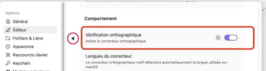 Le correcteur intégré d’Obsidian est basique. Pour une relecture sérieuse, il reste préférable d’utiliser un correcteur dédié comme Antidote ou LanguageTool. Mais pour l’écriture au quotidien, il est très utile.