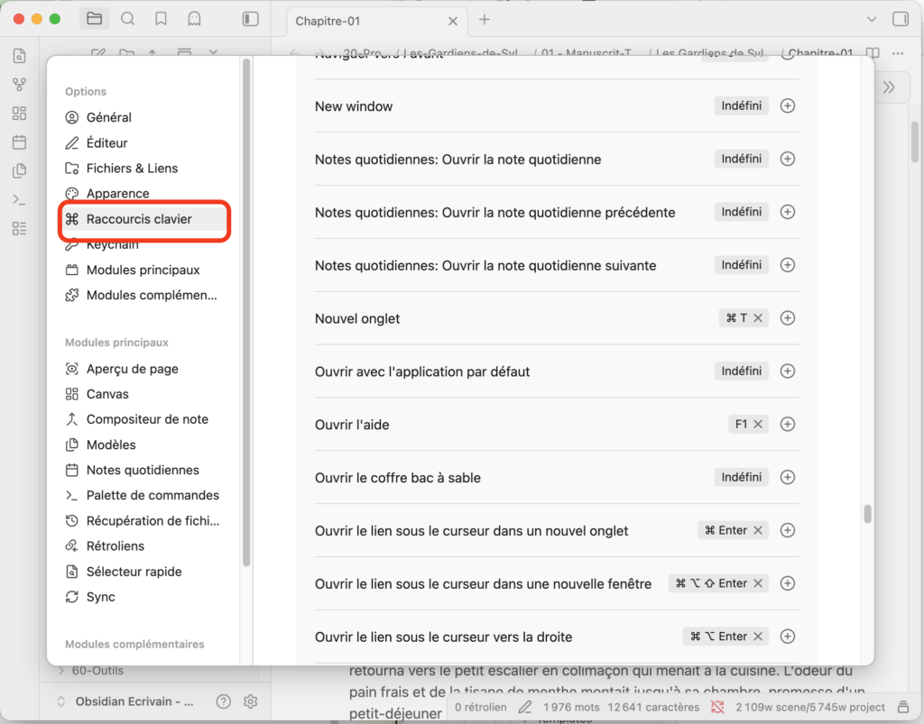 Obsidian vous permet de définir vos propres raccourcis pour les actions que vous utilisez le plus souvent.