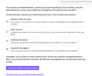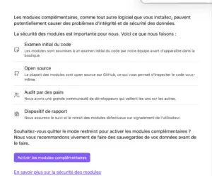 Par défaut, Obsidian bloque les plugins communautaires pour des raisons de sécurité. C’est ce qu’on appelle le “Safe Mode” (Mode Sécurisé).