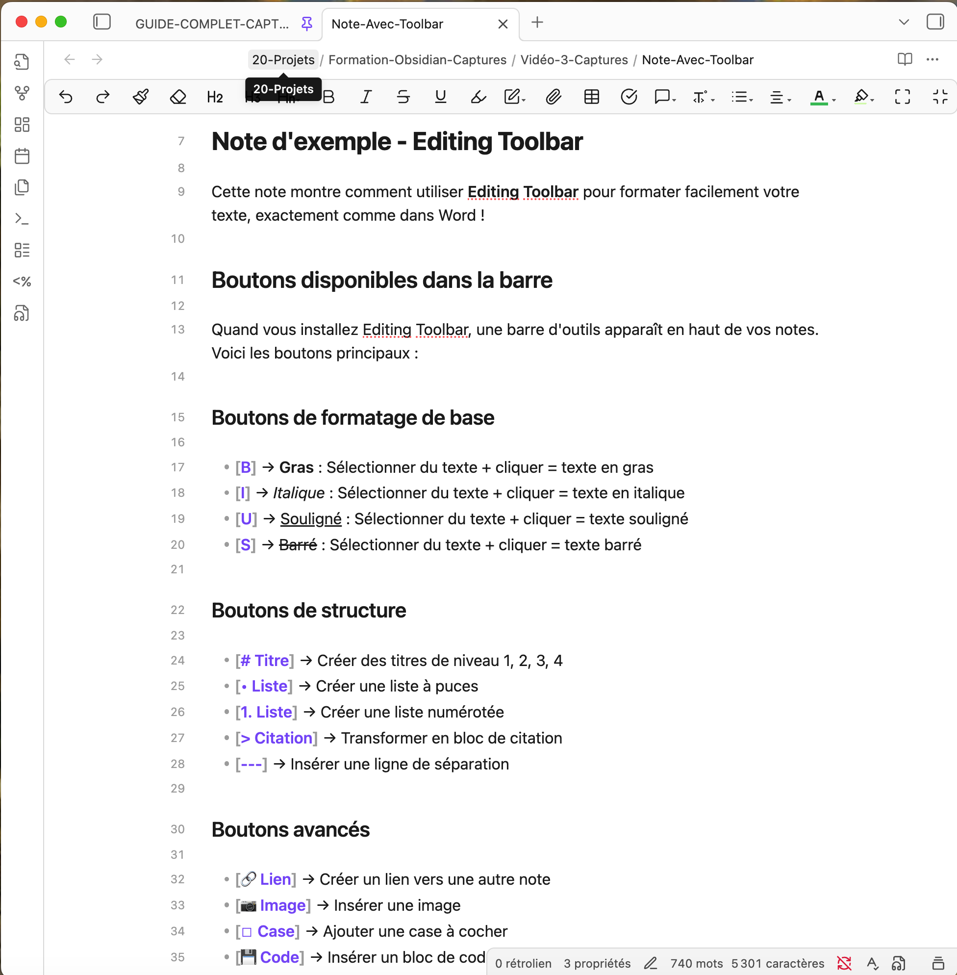 | Templater | Table Community | ★★★☆☆ | ★★★★☆ | Avancés - Templates dynamiques |