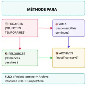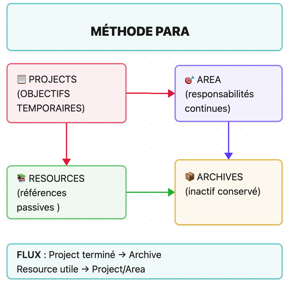 Un projet se termine ? Archivez-le. Un nouveau démarre ? Créez un dossier. PARA grandit avec vous, sans devenir compliqué.
