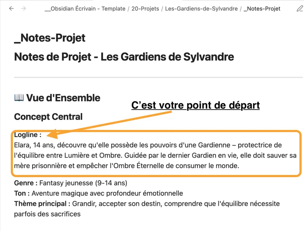 Pour ancrer ce workflow dans la réalité, nous allons suivre tout au long de ce module un exemple fil rouge : la rédaction du Tome 1 des Gardiens de Sylvandre, une aventure fantasy jeunesse.