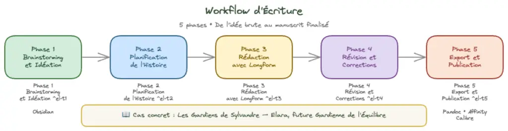✅ Votre workflow se divise en 5 phases : idéation, planification, rédaction, révision, export