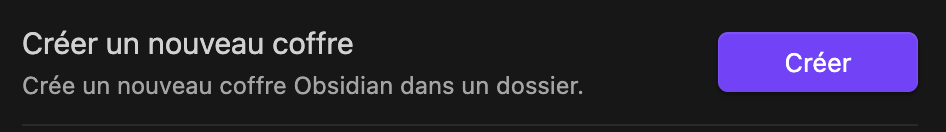 Un vault = Un dossier sur votre disque. Vous pouvez avoir plusieurs vaults (un par projet de livre, par exemple), mais commencez par en créer un seul pour vous familiariser.